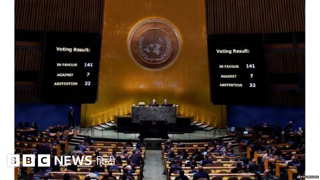 - 7 देशों में प्रस्ताव के ख़िलाफ़ वोटिंग की. ये हैं- रूस, बेलारूस, उत्तर कोरिया, सीरिया, माली, एरिट्रिया और निकारागुआ.