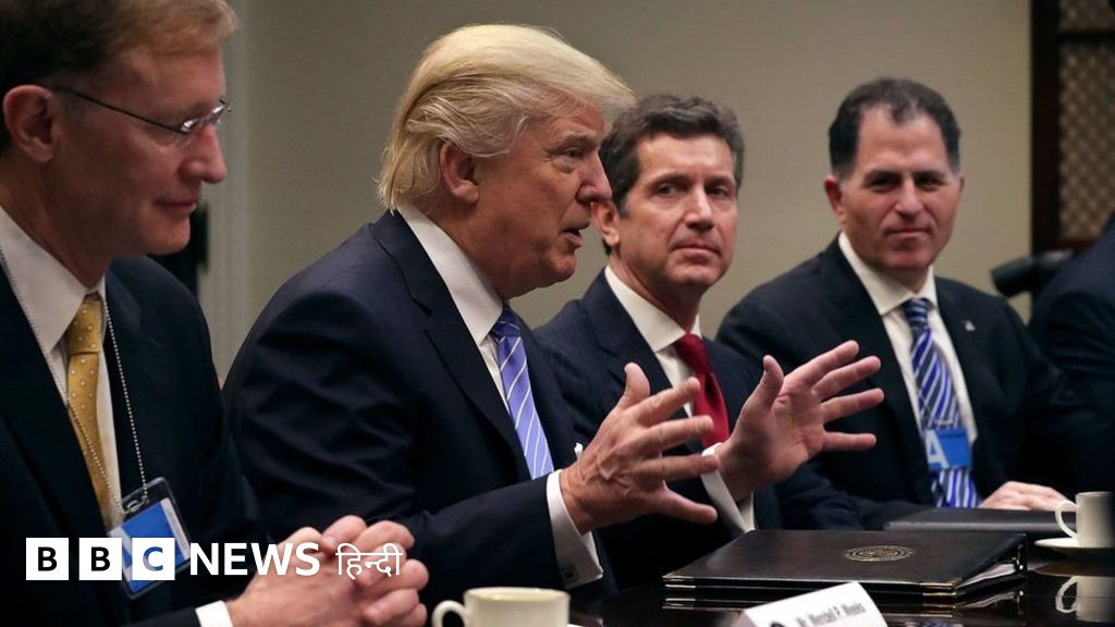व्हाइट हाउस में व्यापार जगत की हस्तियों को ट्रंप ने आयात पर जुर्माना लगाने की चेतावनी दी और कहा कि "आपको सिर्फ़ इतना करना है कि यहीं रहना है."