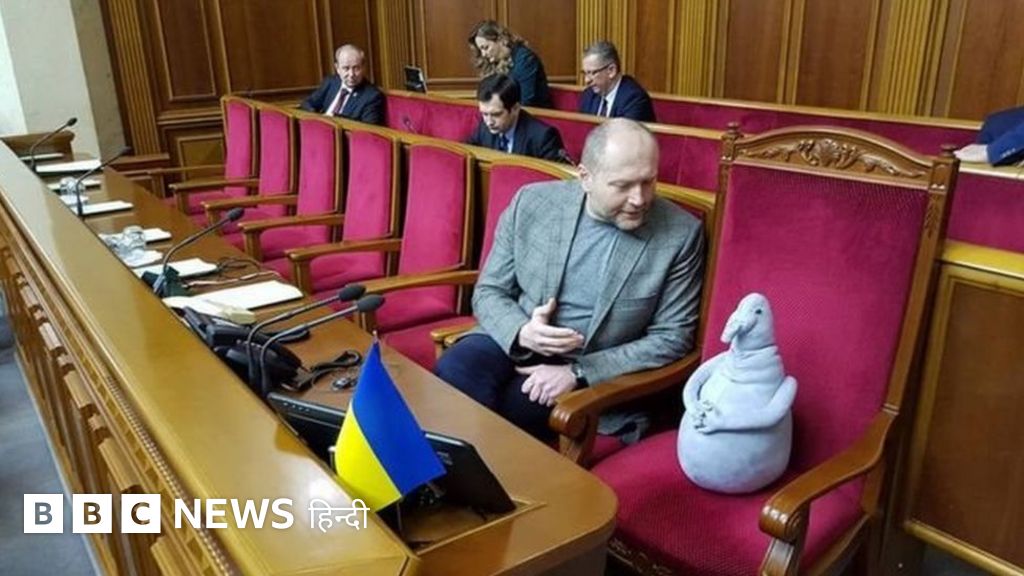 यूक्रेन की संसद में एक सांसद अपने सहयोगियों के गैरहाज़िर रहने पर सवाल उठाने के मकसद से अपने साथ एक ख़ास तरह का खिलौना लाए और उसे संसद की एक खाली सीट पर रख दिया.