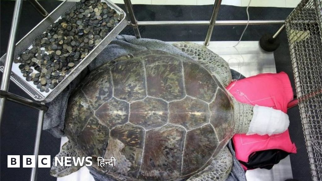 थाईलैंड में पशु चिकित्सकों ने ऑपरेशन कर एक ग्रीन सी टर्टल के पेट से 900 से अधिक सिक्के निकाले हैं.