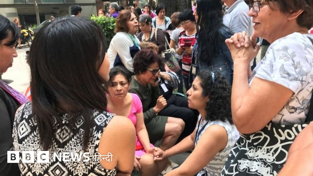 इमेज कैप्शन, परेशान लोग एक-दूसरे को ढाढस बंधाते हुए. मेक्सिको सिटी एयरपोर्ट ने सेवाएं स्थगित कर दी हैं और नेशनल स्टॉक एक्सचेंज में ट्रेडिंग रोक दी गई है.