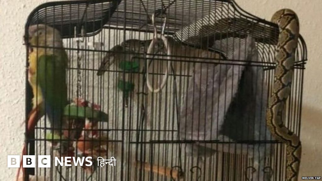 सोमवार को पांच फुट लंबा अजगर मेलविन याप के घर में मिला. याप ने देखा कि अज़गर उनके तोते के पिंजरे से लिपटा हुआ था.