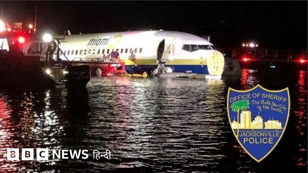 अमरीका के फ़्लोरिडा प्रांत में एक यात्री विमान रनवे से फिसलकर नदी में पहुंच गया.