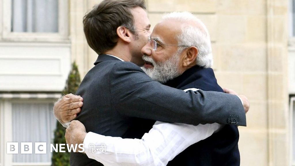 प्रधानमंत्री नरेंद्र मोदी तीन दिवसीय यूरोप दौरे के आख़िरी पड़ाव में बुधवार को फ्रांस पहुँचे थे. फ्रांस के राष्ट्रपति इमैनुएल मैक्रों ने गले लगाकर पीएम मोदी का स्वागत किया.