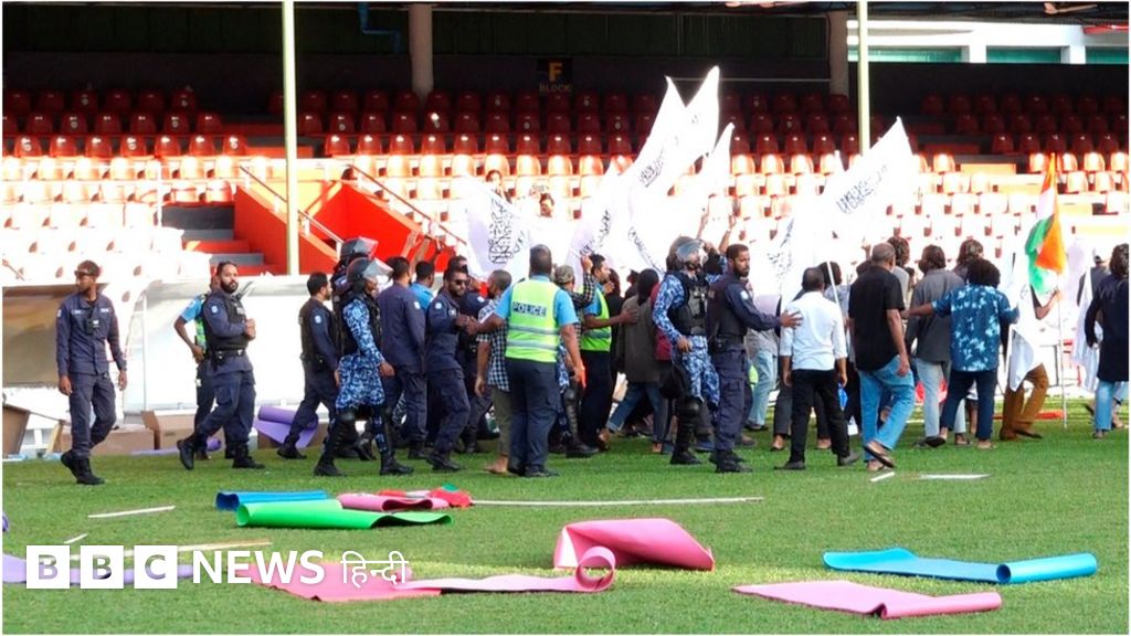 मालदीव की राजधानी माले के नेशनल फुटबॉल स्टेडियम में आक्रोशित भीड़ ने मंगलवार को धावा बोल और यहाँ भारतीय दूतावास की ओर से आयोजित 'योग दिवस' के कार्यक्रम में हिस्सा लेने वालों पर हमला किया था.