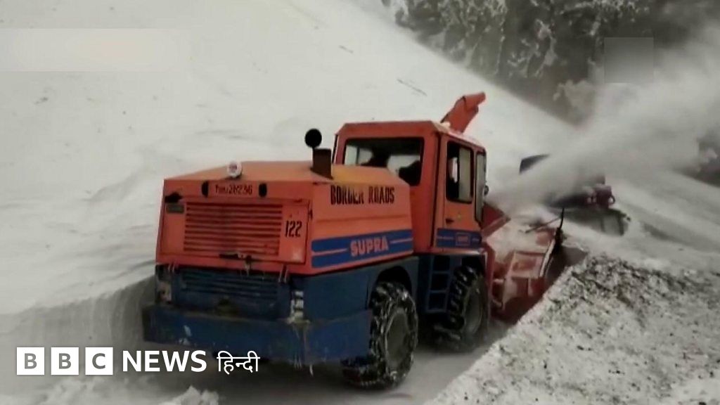 रास्ते से बर्फ हटाती यह बॉर्डर रोड ऑर्गेनाइजेशन (बीआरओ) की टीम है.