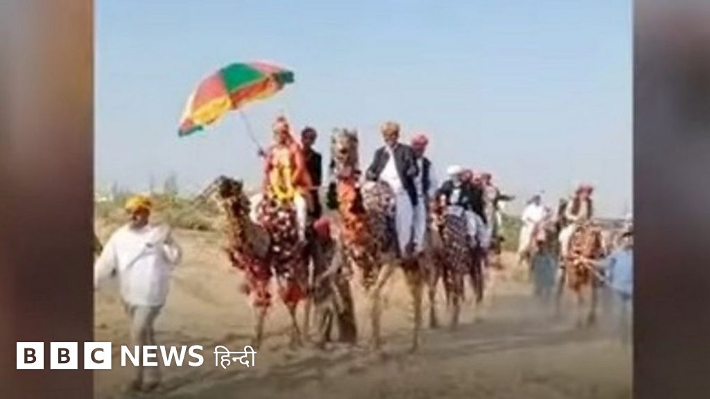 राजस्थान में एक शख़्स अपनी दुल्हन के घर ऊंट पर बारात लेकर पहुंचे. राज्य के बाड़मेर में एक शादी के लिए 20 ऊंट जैसलमेर सें मंगवाए गए.