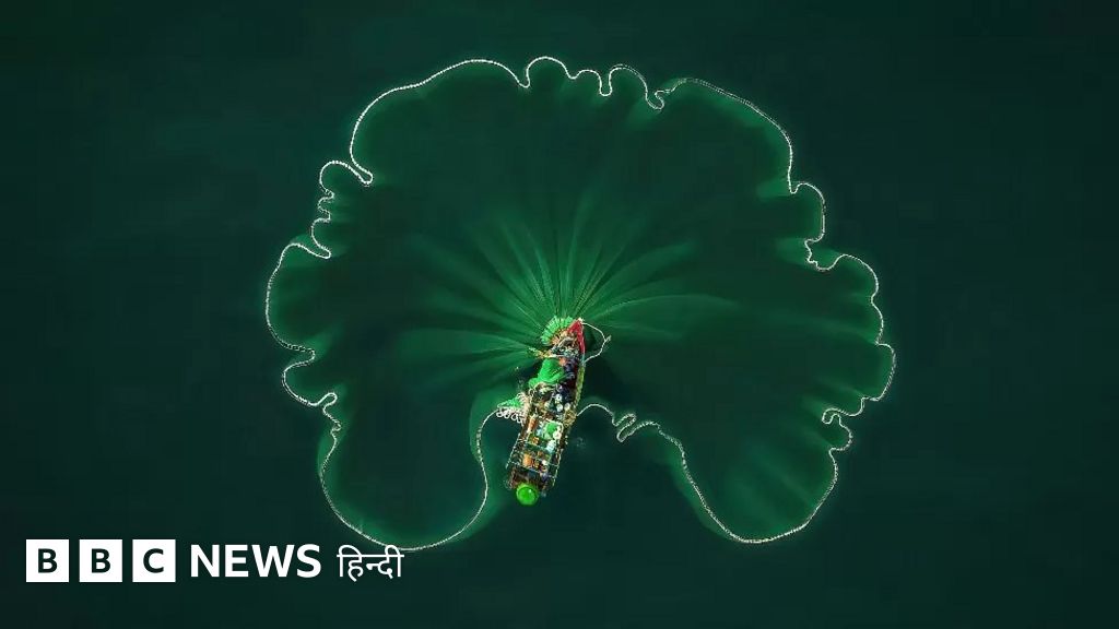 इमेज कैप्शन, 'लैंडस्केप ऑन वॉटर' कैटगरी में पहला पुरस्कार जीता वियतनाम के नूयेन वू की तस्वीर 'ओशियन लोटस लीव' ने. इस तस्वीर में कुआंग नेन प्रांत में संमदर में मछली पकड़ने वाले मछुआरों की चुनौतियों को दिखाया गया है.