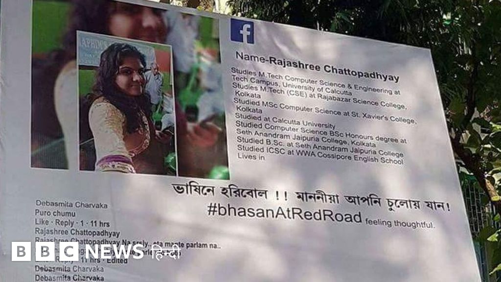 कोलकाता में एक छात्रा के फ़ेसबुक पोस्ट के विरोध में बैनर लगा दिया गया है.