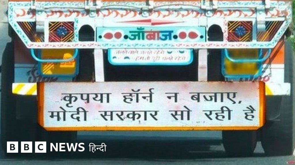 इस तस्वीर में ट्रक के पीछे लिखा है, "कृपया हॉर्न न बजाएं, मोदी सरकार सो रही है."