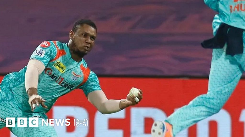 पहली चार गेंदों पर 18 रन बना चुके बाएं हाथ के बल्लेबाज़ रिंकू सिंह को पांचवी गेंद स्टोइनिस ने ऑफ़ स्टंप के बाहर फुल लेंथ डाली. गेंद रिंकू के बल्ले के निचले हिस्से से लग कर कवर के क्षेत्र में ऊपर गई. वेस्टइंडीज़ के इविन लुईस डीप बैकवर्ड से क़रीब 30 गज दौड़ कर कवर क्षेत्र में पहुंचे और फिसलते हुए बाएं हाथ (एक हाथ) से हैरान कर देने वाला कैच लपक लिए.