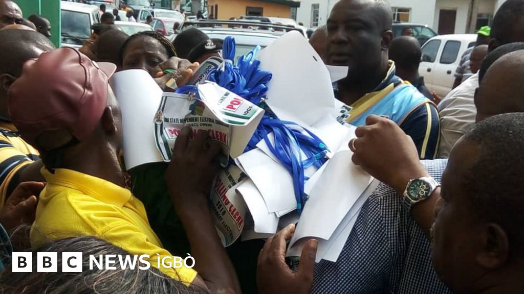 Ka BBC rutere n'Okigwe ebe ndị na-edekọta aha, ndị mmadụ jupụtara na-eche ka ISEC bute akwụkwọ ntuliaka.