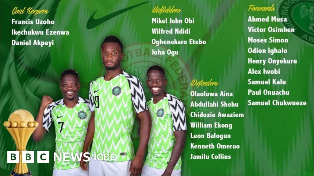 Otu na-ahazị egwu bọọlụ na Naịjrirịa bụ Nigeria Football Federation ewepụtala aha ndị ga-anọchite anya ndị Naịjirịa na asọmpị TotalAfcon 2019 a ga-agba na Ijipt ga-ebido n'ụbọchị iri abụọ na otu nke ọnwa Juun.