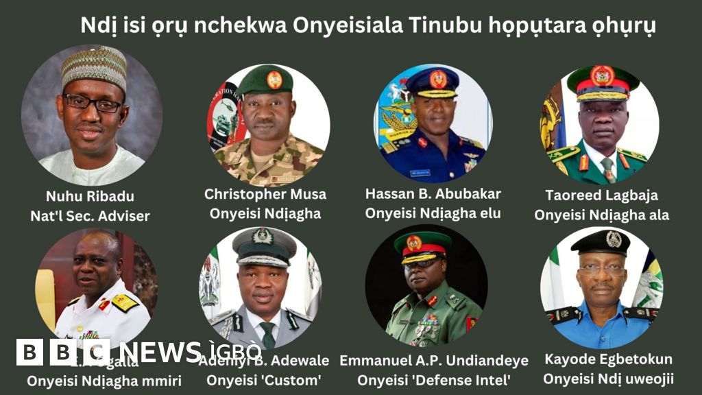Onyeisiala Bola Ahmed Tinubu achụọla ndị isi ọrụ nchekwa Naịjirịa niile, tinyere ndị isi ndị agha ala, ndị agha elu, ndị agha mmiri, na ndị uweojii.