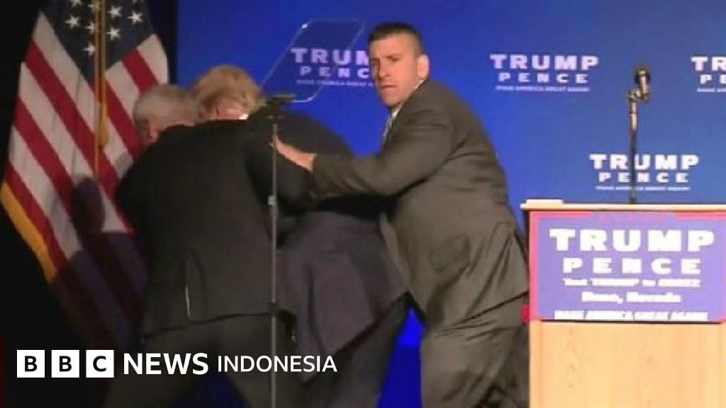 Calon Presiden AS dari Partai Republik Donald Trump sempat dilarikan dari panggung oleh para agen dinas rahasia di sebuah acara kampanye di Reno, Nevada.