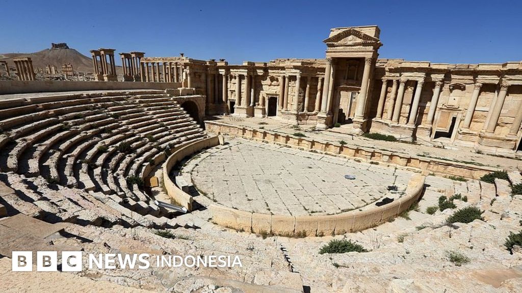 Kaum militan yang menamakan diri Negara Islam atau ISIS menghancurkan berbagai bagian fasad Teater Romawi di Palmyra dan sejumlah monumen purba sekitarnya.