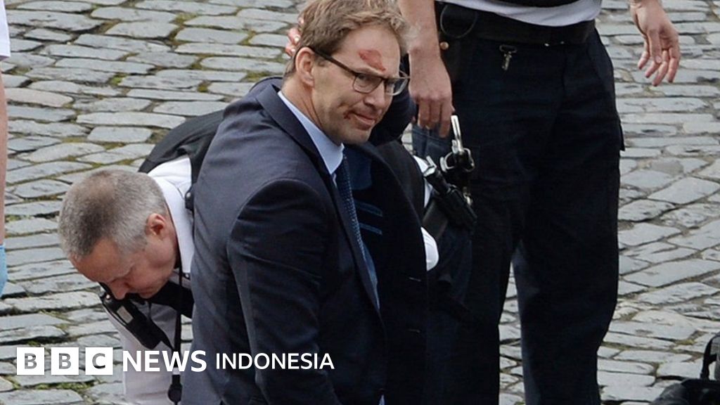 Saksi mata menggambarkan terjadinya kepanikan, sementara penyerang ditembak beberapa kali saat dia mendekati perwira polisi kedua di dekat Gedung Parlemen.
