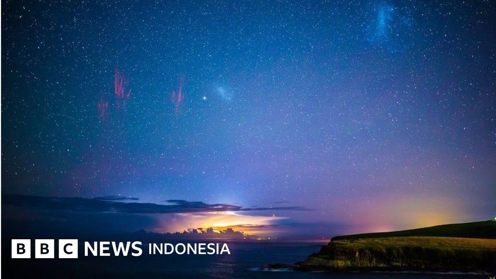 Sprite atau kilatan petir di angkasa - bisa mencapai bagian atas atmosfir bumi, seringkali terlihat seperti seberkas cahaya yang terang.