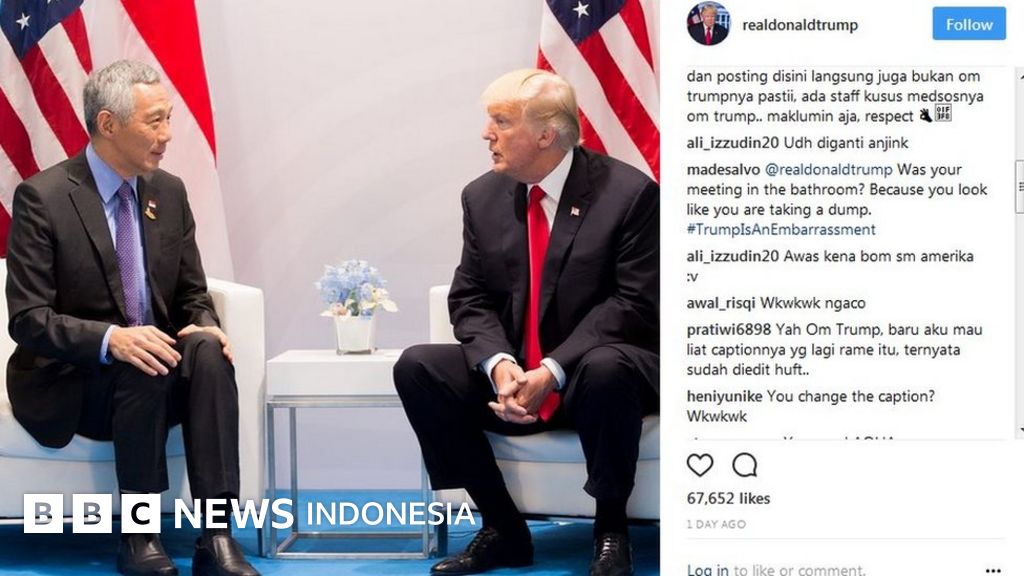 Sebelumnya terbit foto di Instagram yang memperlihatkan pertemuan Presiden Trump dengan PM Singapura, Lee Hsien Loong, namun keterangannya menulis Presiden Indonesia, Joko Widodo.