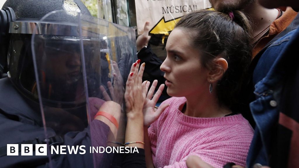 Referendum Katalonia: Massa pro kemerdekaan datangi TPS, polisi menghalangi
