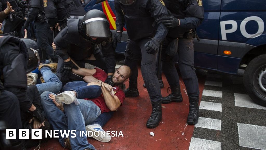 Di sekitar Barcelona, ibu kota Provinsi Catalunya, polisi menggunakan pentungan dan menembakkan peluru karet untuk membubarkan unjuk rasa mendukung referendum.