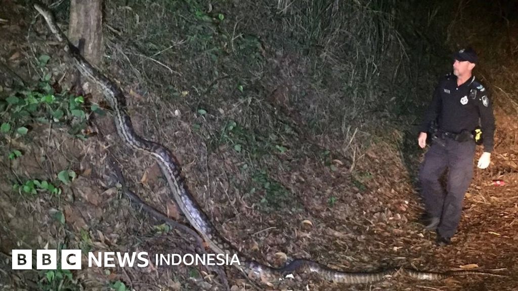Petugas tersebut tengah melakukan patroli malam bersama rekannya di Queensland utara, saat mereka menemukan ular sanca 'raksasa' di sebuah jalanan, ujar pihak kepolisian.