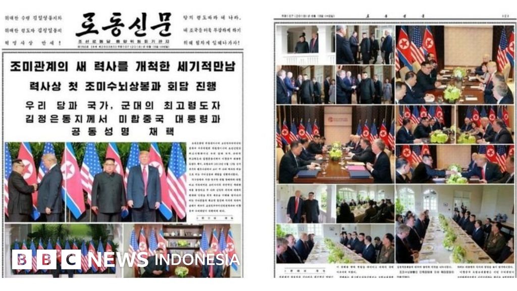 Pertemuan Kim dan Trump yang berlangsung di Singapura, menjadi berita utama media massa Korut. Mereka menampilkan sejumlah potret Kim yang bersebelahan dengan Trump.