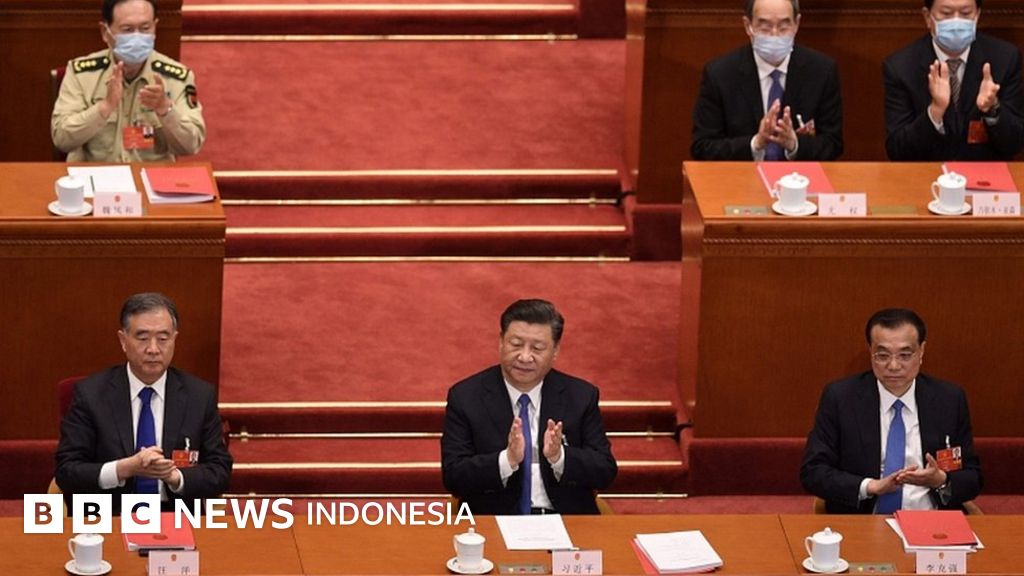 Keterangan gambar, Presiden Xi Jinping bertepuk tangan setelah UU disahkan.