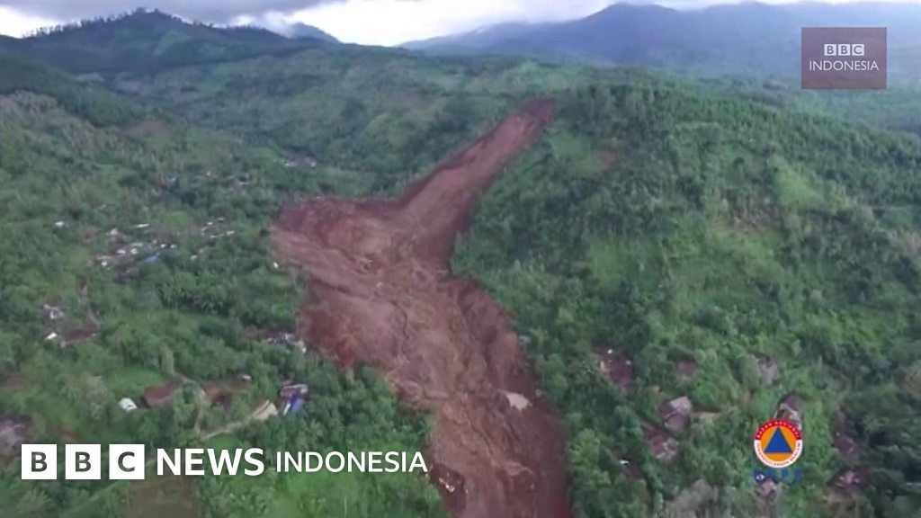 Badan Nasional Penanggulangan Bencana (BNPB) merilisi rekaman video dari udara di lokasi terjadinya longsor di Ponorogo, Jawa Timur. Akibat longsor 300 orang mengungsi dan 26 orang belum ditemukan.