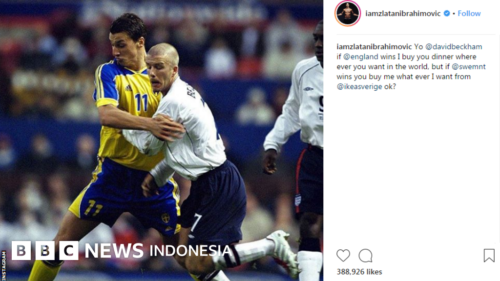 Jelang Swedia versus Inggris, Zlatan Ibrahimovic tantang David Beckham taruhan