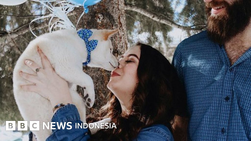 Di Ypsilanti, Michigan, Amerika Serikat, Lisa Rochow dan pasangannya, Cameron Wheeler, duduk berdampingan sambil memangku Aery, anjing Siberian Husky mereka.