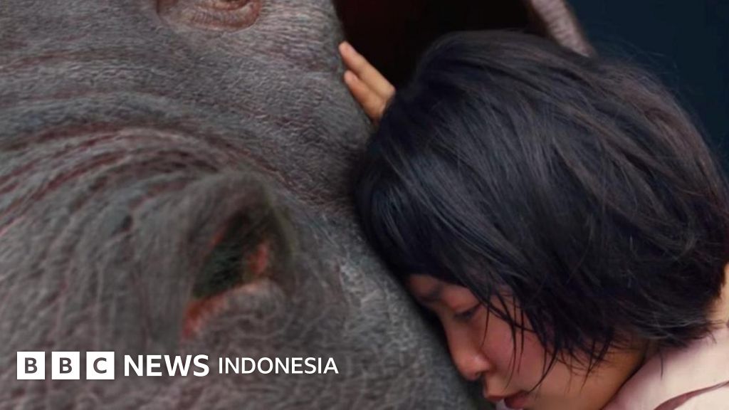 Keterangan gambar, Okja dipelihara di pegunungan berhutan lebat Korea oleh seorang anak perempuan baik hati, Mija (Seo Hyun An).