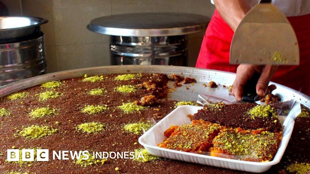 Knafa versi Jalur Gaza, sebuah kue gula khas Timur Tengah, sangat jarang ditemukan di luar daerah pantai mungil ini.