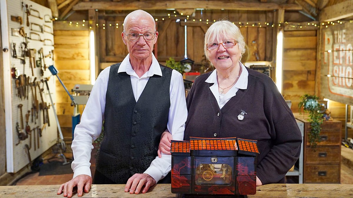 - Episode 6The team restore a kitchen table, clown shoes, a Victorian diorama and a blue bear.58 mins