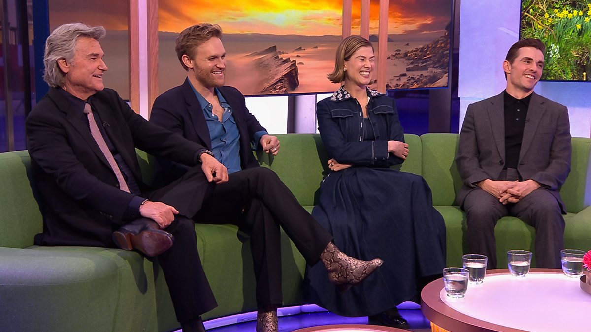 Kurt and Wyatt Russell, Rosamund Pike and Dave Franco join Alex Jones and Roman Kemp on the One Show sofa.