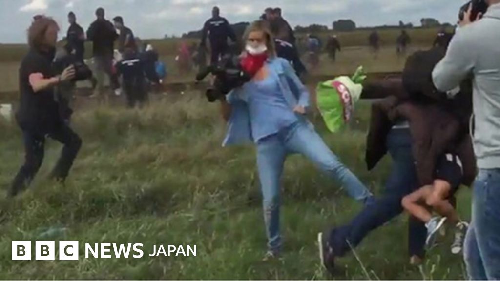 ハンガリーN1TVのカメラマンが、走り逃げる移民の親子をわざと足を引っ掛けて転ばせた。その様子が別のカメラにとらえられていたため、カメラマンは解雇に。テレビ局は「容認できないふるまい」だとコメントした。