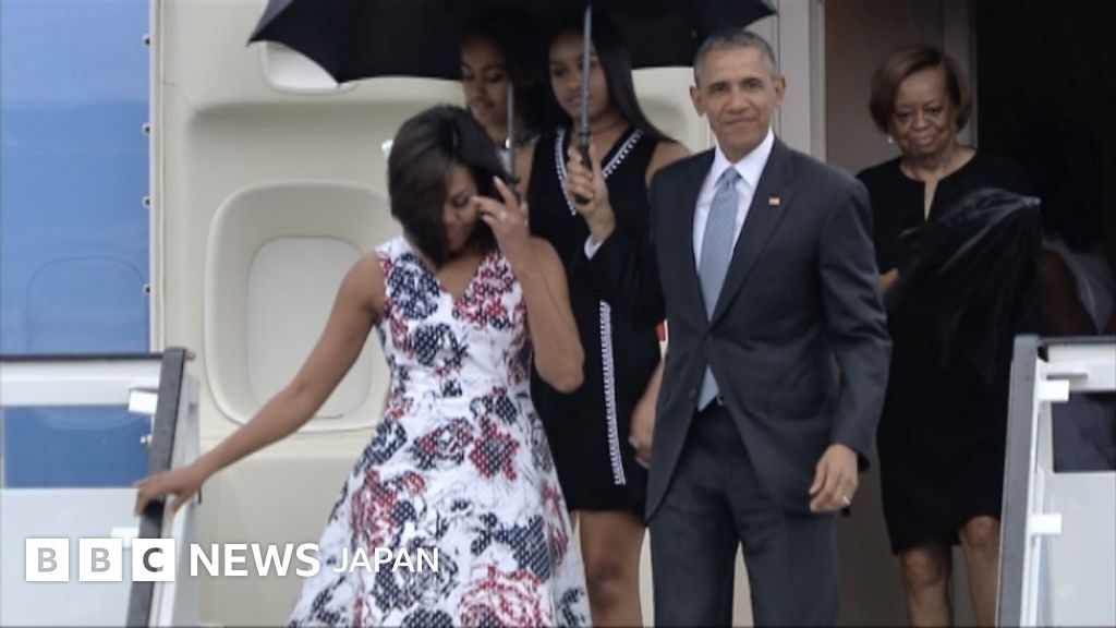 大統領専用機エアフォース・ワンで小雨降るハバナに到着したオバマ氏は、ミシェル夫人や娘たちを伴って笑顔でタラップを降り、ブルーノ・ロドリゲス外相に出迎えられた。