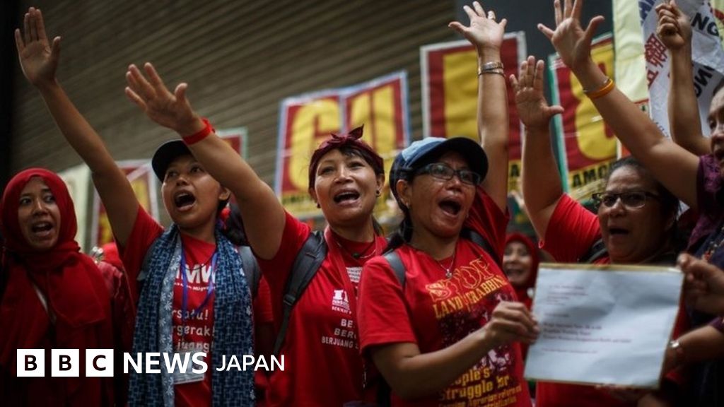 香港の家政婦、高層ビルの窓ガラス掃除禁止を求め行進