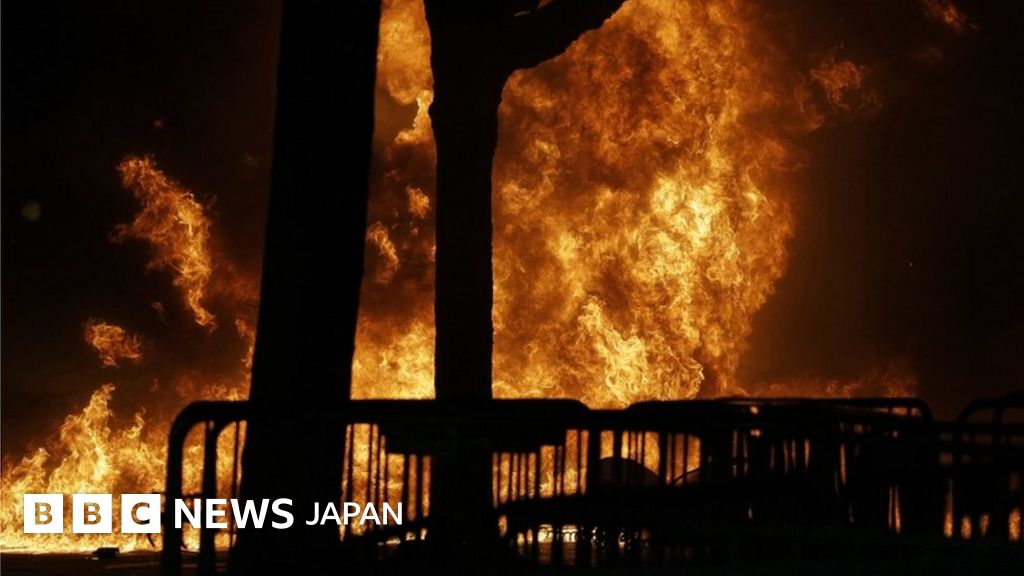 学生らのデモは当初、平和的だったが、その後、講演会場の窓ガラスが割られるなどしたほか、発煙弾が投げられ、大学施設が集まるスプロウル・プラザで炎が上がった。