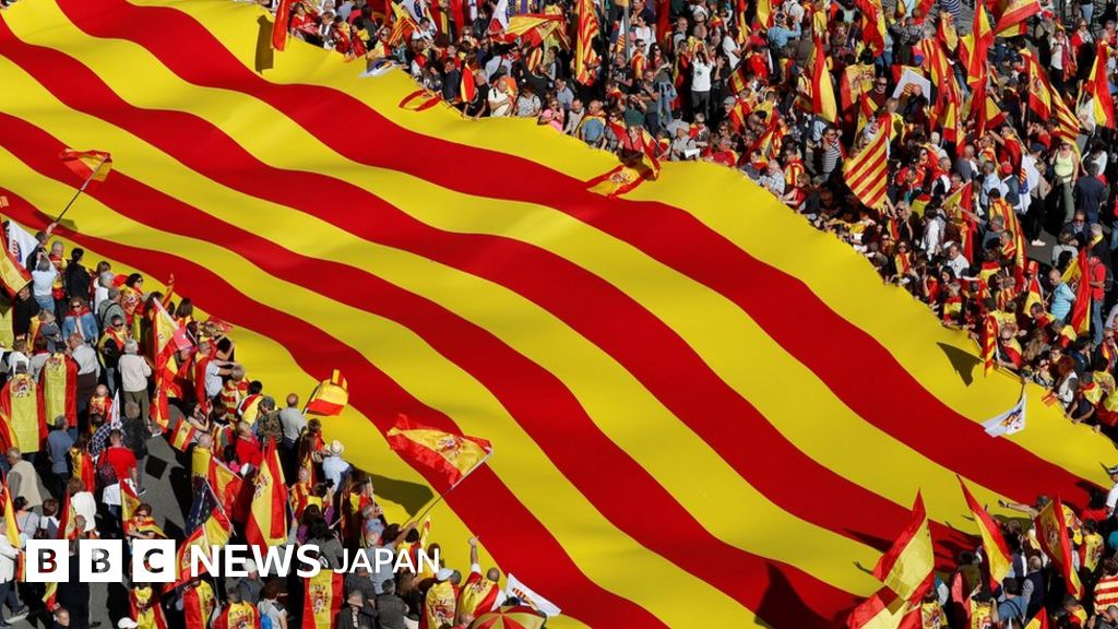 スペイン北東部カタルーニャ自治州が独立を宣言したため自治権をはく奪されたこと受けて、州都バルセロナで29日 、少なくとも30万人がスペインの結束を求める独立反対集会に参加した。