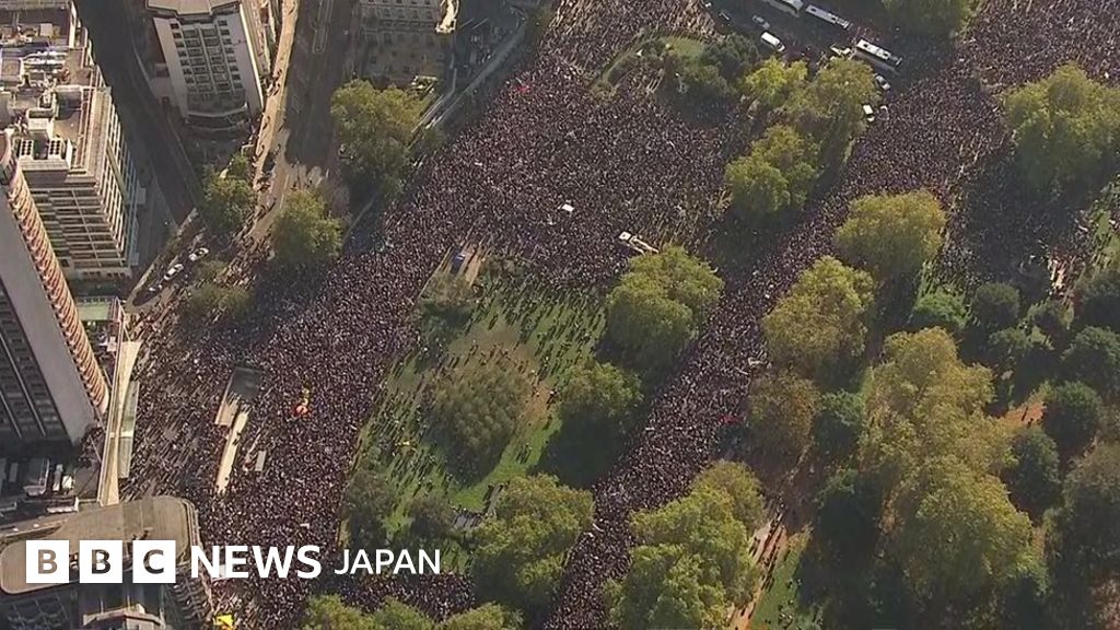 英国の欧州連合(EU)離脱について英政府がEUと交わす最終合意の内容について、国民に賛成・反対の意思表示をする機会を与えるよう求める行進が20日、ロンドンで実施された。主催者発表で約70万人が参加した行進は、英国のEU離脱(ブレグジット)について過去最大級の抗議行動となった。