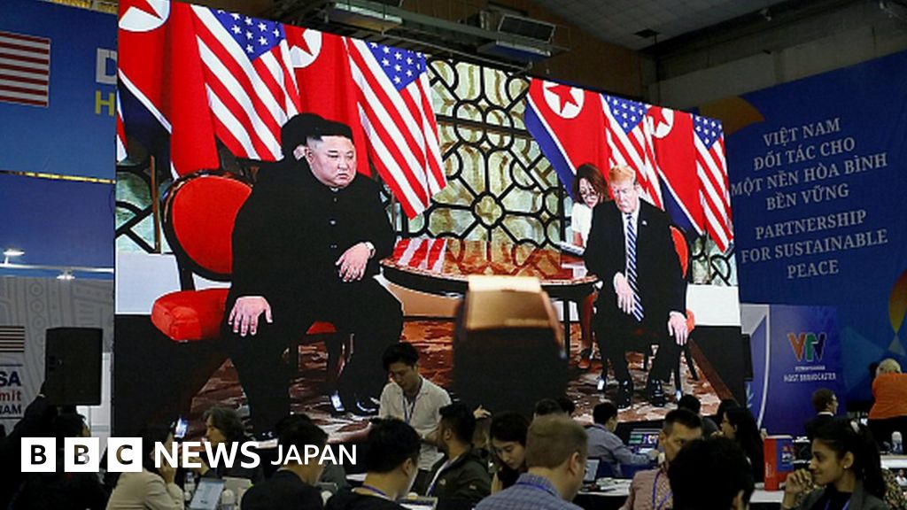 画像説明, 米朝両首脳が合意文書に署名するとみられていたが、会談は決裂に終わった