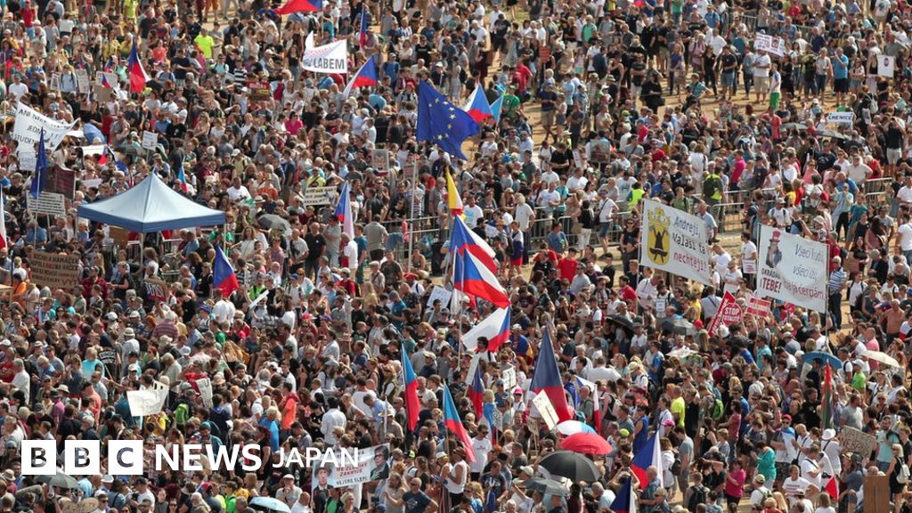 汚職疑惑の首相退陣求め数十万人がデモ チェコ