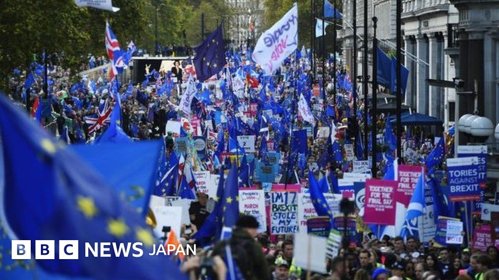 下院で審議が続くなか、ロンドン・ウエストミンスター周辺では数万人が行進し、離脱協定案について国民が賛否を表明できるよう、2度目の国民投票の実施を求めている。