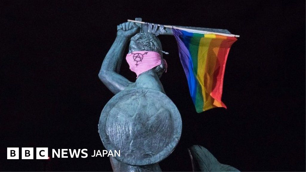 ポーランド、LGBT活動家を訴追 ワルシャワの像に旗とマスク