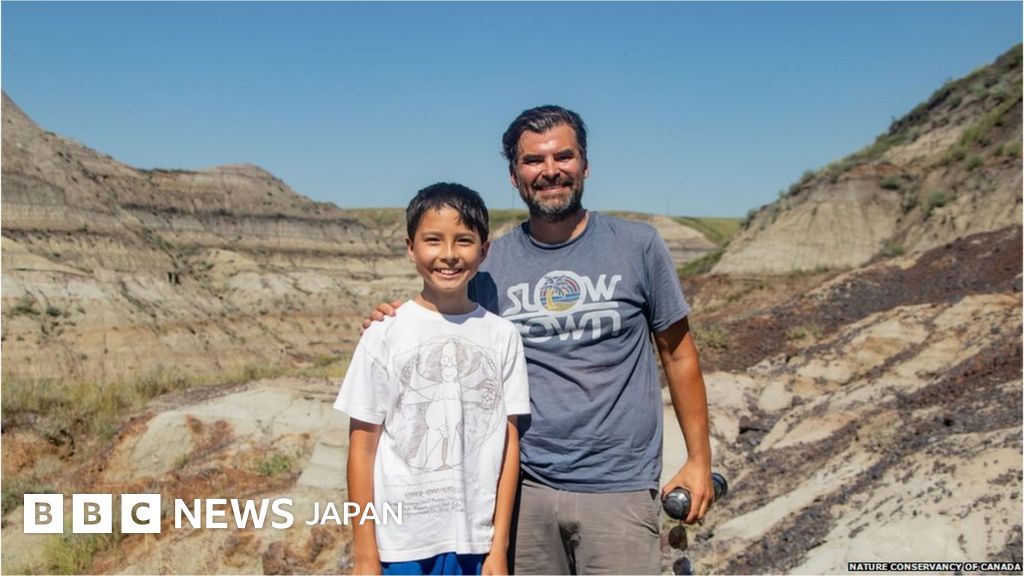 6歳で恐竜に興味を持ち、アルバータ州のバッドランドにある自然保護区を父親のディオン・ラシュキンさんとよく歩いているというネイサンさんは、最初に骨を見たときは「完全に言葉を失いました」とBBCに語った。