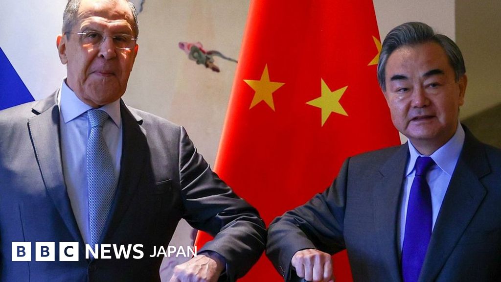 画像説明, ロシアのラヴロフ外相(左)と中国の王外相(23日、中国・桂林)