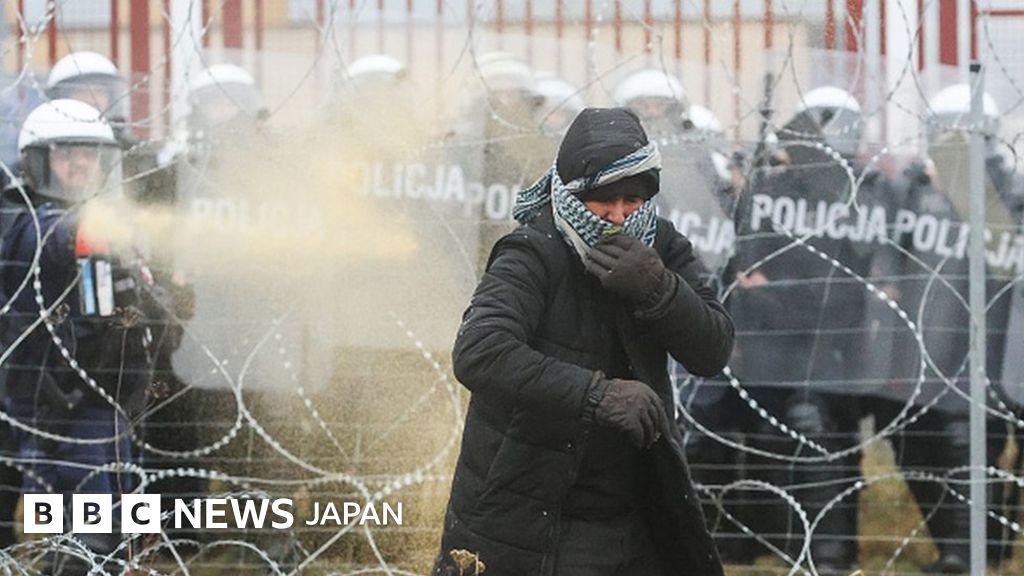 移民が押し寄せて問題となっているベラルーシのポーランド国境で、ポーランド部隊が催涙ガスや放水車で対応した。現場の映像では、柵などで防御されたポーランド国境を守る部隊に向けて、移民らが石などを投げている様子がみられる。