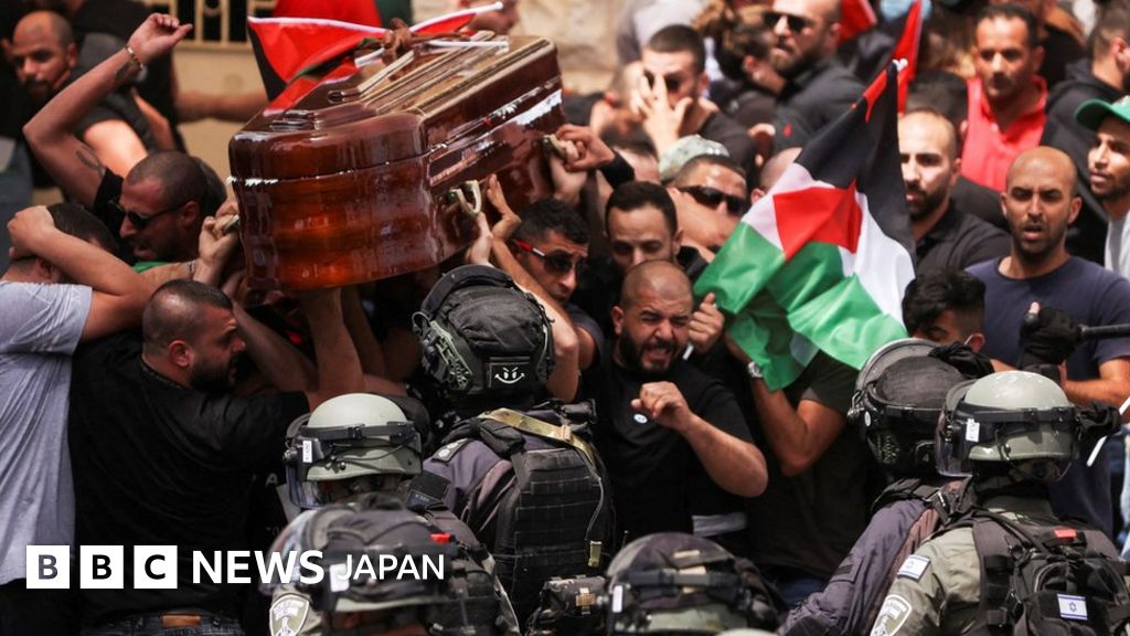 パレスチナ自治区でイスラエル治安部隊による作戦を取材中に銃撃され死亡した記者の葬儀が13日、東エルサレムで執り行われた。中東の衛星放送局アルジャジーラのシェリーン・アブ・アクラ記者(51)の棺を運ぶ葬列では、イスラエルの警官隊と参列者が衝突し、もみ合いの中で棺が揺さぶられ、地面に落ちそうになった。