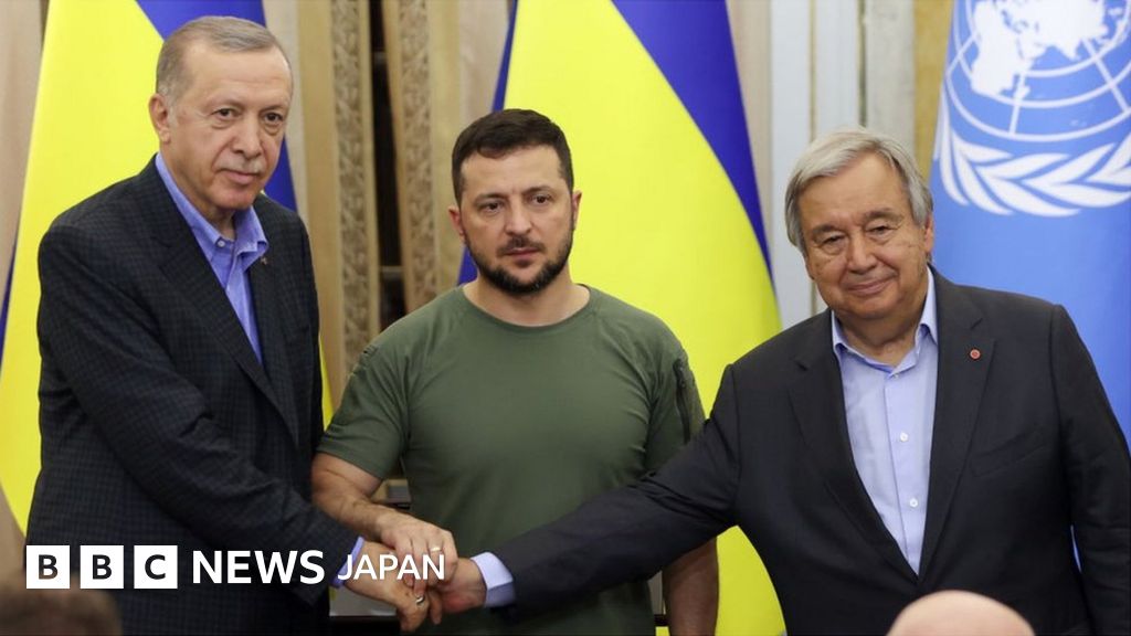 ロシアの侵攻が続くウクライナのウォロディミル・ゼレンスキー大統領とトルコのレジェプ・タイイップ・エルドアン大統領、国連のアントニオ・グテーレス事務総長は18日、ウクライナ西部リヴィウで三者会談を行った。グテーレス氏は南部ザポリッジャ原子力発電所付近での戦闘に「重大な懸念」を示した。